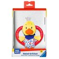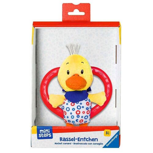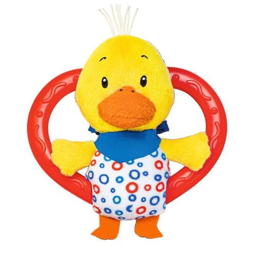 Το μωρό μπορεί να εξασκήσει τις πρώτες του πιαστικές κινήσεις με το μαλακό παπάκι αγκαλιά. Η αφράτη μικρή κουδουνίστρα πάπια μπορεί να πιαστεί υπέροχα και να κουνηθεί πάνω στο δαχτυλίδι σε σχήμα καρδιάς από υλικό οδοντοφυΐας. Η αισθητηριακή αντίληψη και οι κινητικές δεξιότητες ενθαρρύνονται με πολλούς τρόπους. Ο δακτύλιος οδοντοφυΐας κάνει μασάζ στα ούλα του μωρού με την επιφανειακή του δομή και έτσι βοηθά στην οδοντοφυΐα