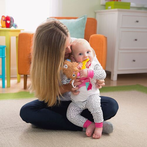 - Το μασητικό παιχνίδι διαθέτει διασκεδαστικά χρώματα και μοτίβα με αντίθεση για οπτική διέγερση