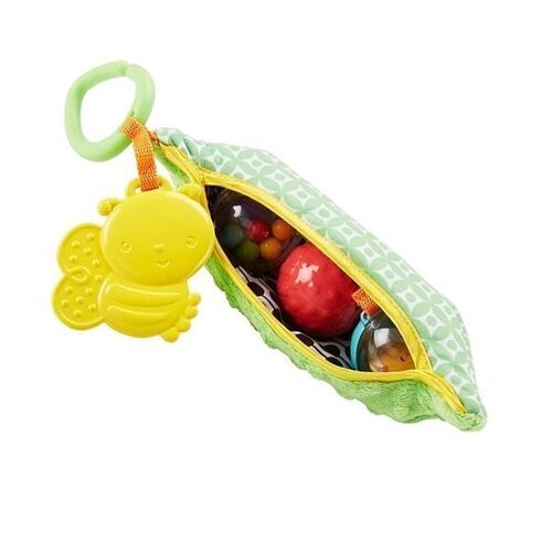 Ένα φασόλι γεμάτο εκπλήξεις για το μικρό σας! Σε μορφή φασολιού μια κουδουνίστρα με κρόκο για να μπορέσετε να την κρεμάσετε και στο καρότσι! Μέσα έχει 3 μπιζέλια, κάθε μπιζέλι προσφέρει διαφορετική δραστηριότητα, το ένα έχει μέσα του καθρεφτάκι κι λειτουργεί ως κουδουνίστρα. Επιπλέον έχει και μασητικό παιχνίδι, Το μικρό σας θα παραμείνει απασχολημένο και θα οξύνει τις οπτικοακουστικές του αισθήσεις.