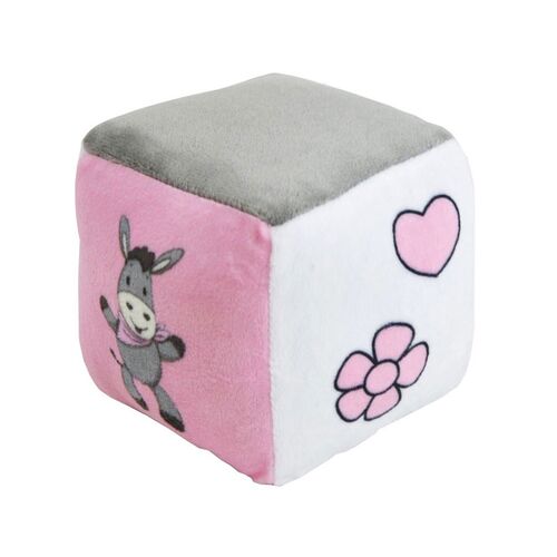 Κύβος Δραστηριοτήτων-Κουδουνίστρα Ροζ Χρώμα Λούτρινο 11cm x 11cm