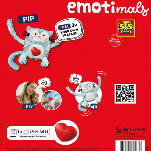 Τα emotimals δεν είναι μόνο υπέροχα για αγκαλιές, αλλά επιτρέπουν επίσης στο παιδί σας να ακούσει μια οικεία φωνή, ακόμα και όταν εσείς ως γονιός δεν είστε κοντά. Μπορείτε να ηχογραφήσετε τρία διαφορετικά, εξατομικευμένα μηνύματα σε αυτή την ειδική καρδιά. Όταν κάνετε λίγο κούνημα στο Emotimal, θα παίξει ένα από τα ηχογραφημένα μηνύματα. Είναι ιδανικά για να βοηθήσουν τα παιδιά να κοιμηθούν ή να τα κάνουν να νιώθουν επιπλέον άνετα στον παιδικό σταθμό, στον ύπνο ή στην πρώτη τους μέρα στο σχολείο. Κάθε ζώο είναι φτιαγμένο από υφάσματα με ποικιλία υφών, δημιουργώντας την απόλυτη εμπειρία αγκαλιάς!
