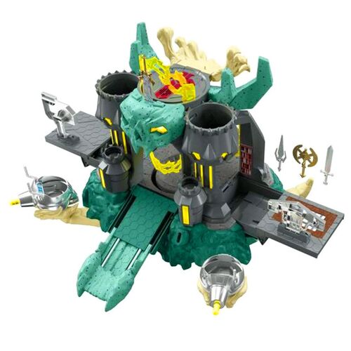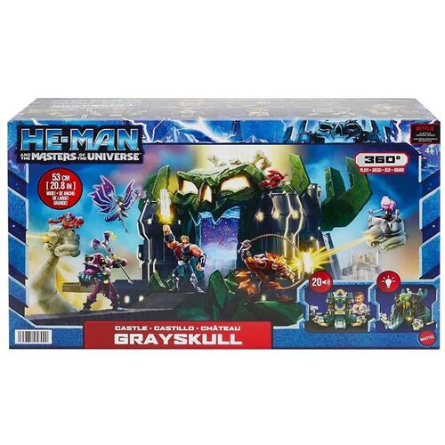 Φέρτε το Castle Grayskull στο σπίτι! Ξαναζήστε όλες τις μάχες καλού εναντίον κακού της Eternia με αυτό το σετ παιχνιδιού του πανίσχυρου φρουρίου με εκτεταμένες δυνατότητες. Αυτό το σχέδιο παιχνιδιού παραμένει πιστό στη σειρά κινουμένων σχεδίων του Netflix και ζωντανεύει το δράμα με δραματικά φώτα και ήχους, ένα αναδιπλούμενο «Jawbridge», αναδιπλούμενους σταθμούς μάχης, αποσπώμενους λοβούς με βλήματα και αξεσουάρ μάχης. Τα χρώματα και τα διακοσμητικά μπορεί να διαφέρουν.