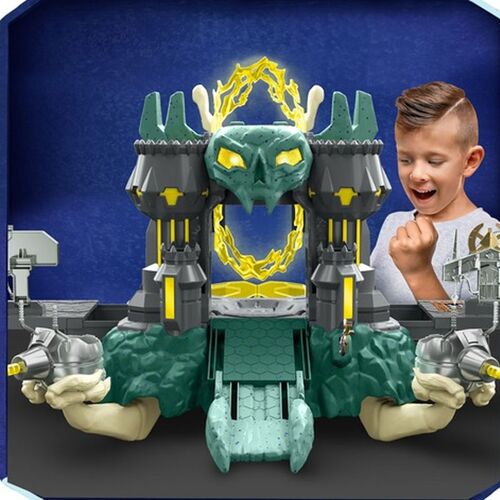 - Το 'jawbridge' μπορεί να ανοίξει χρησιμοποιώντας το σπαθί που περιλαμβάνεται. Τα μάτια του κρανίου αναβοσβήνουν και ένας γιγαντιαίος βρυχηθμός σηματοδοτεί τις περιπέτειες μέσα καθώς ανοίγει δραματικά! Το κουμπί στο πλάι ανοίγει επίσης τη σιαγόνα.