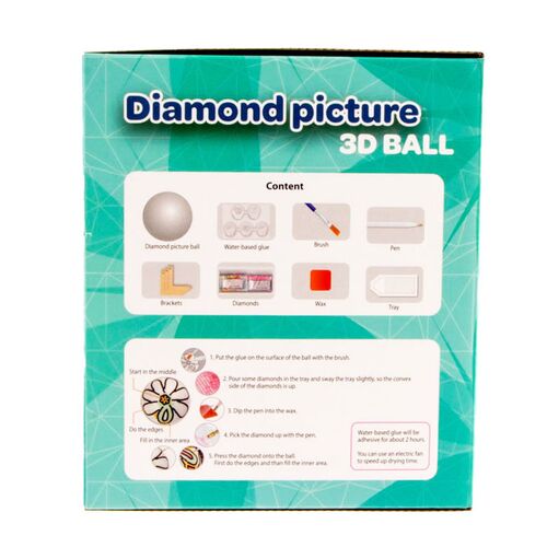 Ένας τρισδιάστατος πίνακας με διαμάντια! Κάντε μια όμορφη δημιουργία κολλώντας όλα τα διαμάντια σε αυτή την μπάλα. Η μπάλα έχει διάμετρο 10 εκατοστά. Κατάλληλο για παιδιά από 8 ετών.