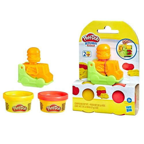 - Παίξτε σχεδόν οπουδήποτε με αυτό το μίνι παιχνίδι φορτηγών τροφίμων για παιδιά 3 ετών και άνω! Έρχεται με 2 διαφορετικά κουτιά Play-Doh και επιτρέπει στα παιδιά να φτιάξουν 4 κλασικά σχήματα Fun Factory. Απλώς προσθέστε την ένωση Play-Doh και πιέστε!