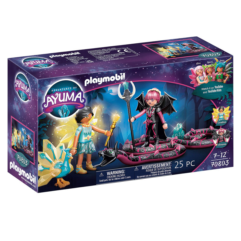 Οι Crystal Fairies με τα μαγικά τους ζωάκια ζουν αρμονικά στη Νεραϊδοχώρα. Μία μέρα όμως έντρομες μαθαίνουν ότι οι Bad Fairies έχουν ανακαλύψει που έχουν κρύψει οι νεράιδες τους μαγικούς νεραϊδοκρυστάλλους και σχεδιάζουν να τους κλέψουν. Από τη μια στιγμή στην άλλη ο νεραϊδόκοσμος κινδυνεύει να χαθεί! Με τα φτερά νυχτερίδας, η Bat Fairy Noxana διασχίζει τον ουρανό για να πει σε όλο τον κόσμο για τη σπουδαία τους ανακάλυψη. Θα καταφέρει άραγε η γενναία Crystal Fairy με το μαγικό της παγώνι να σταματήσουν τα σχέδια των Bat Fairies; Το σετ παιχνιδιού περιλαμβάνει την Crystal Fairy Avelina με το μαγικό της παγώνι, την Bat Fairy Noxana με τον σύμμαχό της το φίδι και τα μαγικά τους ραβδιά.