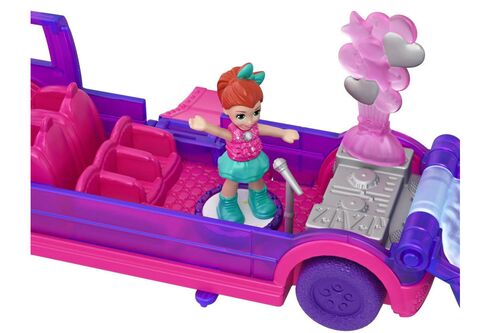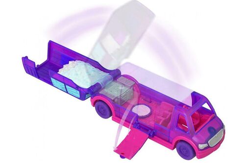 - Το όχημα μεταμορφώνεται για να αποκαλύψει μια περιοχή χορού με περιστρεφόμενη πίστα και θάλαμο DJ. Η κούκλα Micro Lila και οι φίλες της μπορούν να χορέψουν και μετά να χαλαρώσουν στο υδρομασάζ
