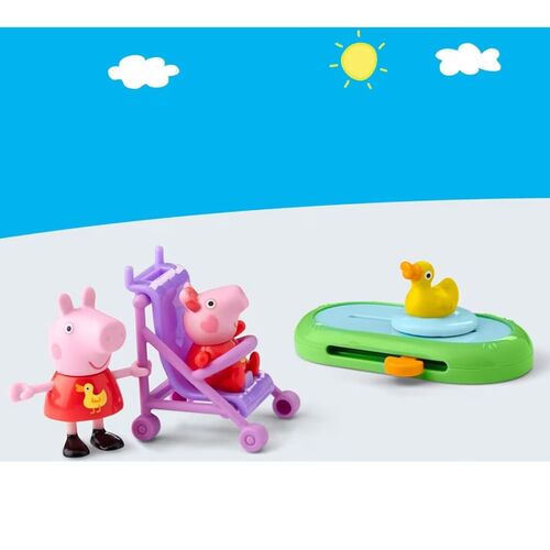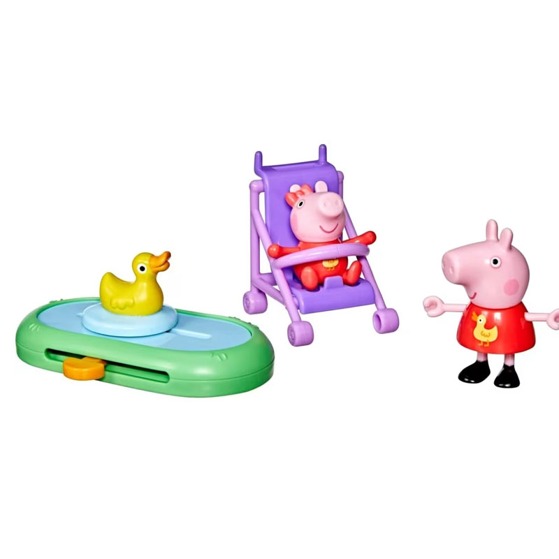 Αυτό το σετ παιχνιδιών Peppa Pig 4 τεμαχίων έρχεται με 2 αγαπημένους χαρακτήρες Peppa Pig, την Peppa και την μικρή της αδελφή Evie, φορώντας ασορτί κίτρινες στολές πάπιας! Οι μικροί φίλοι μπορούν να φανταστούν την Πέππα να σπρώχνει την Ίβι στο καροτσάκι και να παρακολουθούν την πάπια να κολυμπάει πέρα δώθε στη λίμνη! Εμπνευσμένα από τη σειρά, αυτά τα παιχνίδια για κορίτσια και αγόρια ηλικίας 3 ετών και άνω είναι βέβαιο ότι θα εξάψουν τη μεγάλη φαντασία των μικρών γουρουνιών! Ένα διασκεδαστικό μικρό δώρο για τα παιδιά που αγαπούν τη σειρά.