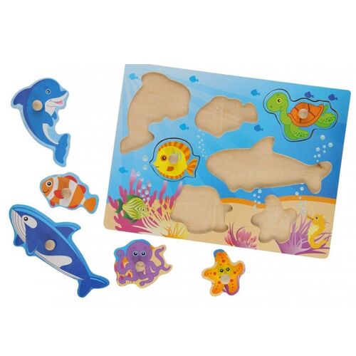 Ξύλινο Παζλ Ενσφηνώματα Ζώα της Θάλασσας 30x22cm