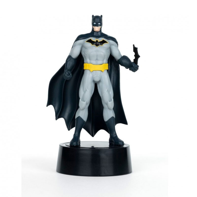 Η φιγούρα δείχνει τον Batman σε δυναμική στάση με λεπτομέρειες σχεδιασμού, ενσωματωμένο φωτισμό LED και δυνατότητα εμφάνισης σε ράφι ή γραφείο.