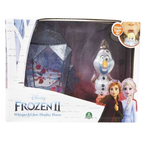 Φωτίστε τον κόσμο σας με το αστέρι του Frozen 2. Η εντυπωσιακή βιτρίνα είναι το τέλειο σπίτι για τη φιγούρα δράσης Frozen 2 Whisper and Glow. Τοποθετήστε τη μίνι φιγούρα του Ολαφ μέσα στο σπίτι της, φυσήξτε την οροφή και θα ανάψει ως δια μαγείας. Φυσήξτε ξανά και δείτε το φως του να αλλάζει χρώμα. Συνδέστε τα σπίτια με τα άλλα άτομα της ποικιλίας (πωλούνται χωριστά) για να δημιουργήσετε μια παγωμένη σκηνή. Υπάρχουν 4 διαφορετικές βιτρίνες για συλλογή, το καθένα με χαρακτήρα Exclusive Frozen.