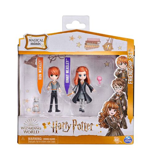 - Αποκλειστικές κούκλες Ron and Ginny Weasley: Οι κούκλες Ron και Ginny 7,5cm φορούν τις στολές τους Hogwarts. Τα αδέρφια μπορούν να πάρουν διαφορετικές στάσεις: γυρίζουν τα κεφάλια τους, κινούν τα χέρια τους και κάθονται.