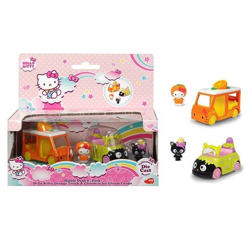 Παιχνίδι Μινιατούρα Dazzle Dash Kitty Με Πορτοκαλί Φορτηγάκι & Chococat 2 Φιγούρες και 2 οχήματα 18x7x15cm