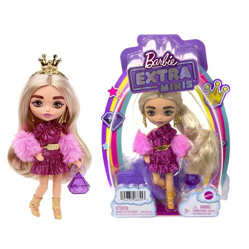 Γνωρίστε τις πιο EXTRA μικρές κούκλες -- την Barbie® Extra Minis™. Είναι ακριβώς όπως οι κούκλες Barbie® Extra -- αλλά σε μικρογραφία! . Κάθε κούκλα έρχεται με πολύ μακριά μαλλιά, παιχνιδιάρικες μοδάτες πινελιές και υπερβολικά αξεσουάρ. Και με μια βάση κούκλας για καθεμία, τα παιδιά μπορούν να δημιουργήσουν τη δική τους οθόνη Barbie® Extra Minis™! Οι κούκλες δεν μπορούν να σταθούν μόνες τους. Τα χρώματα και τα διακοσμητικά μπορεί να διαφέρουν