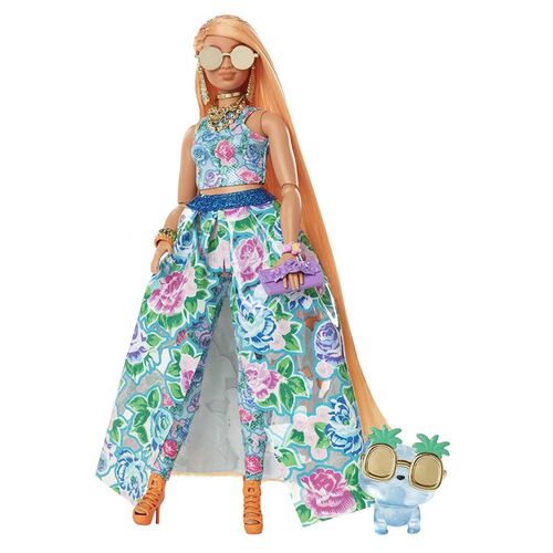 Οι κούκλες Barbie Extra Fancy ανεβάζουν την εμφάνισή τους στο επόμενο επίπεδο με εντυπωσιακά, έτοιμα για κόκκινο χαλί φορέματα με πολυτελείς λεπτομέρειες και αξεσουάρ, καθώς και ένα κατοικίδιο που ταιριάζει με τη μοναδική τους εμφάνιση. Η κούκλα Barbie έχει πολύ μακριά, λαμπερά, πορτοκαλί μαλλιά με αστραφτερές ανταύγειες και πλεκτή λεπτομέρεια. Επιδεικνύει την αυτοπεποίθησή της με ένα glam φόρεμα 2 κομματιών πάνω από ασορτί κολάν με floral print. Πορτοκαλί γόβες, χρυσά γυαλιά ηλίου, μια τσάντα με λουλούδια και πολλά πολυτελή κοσμήματα ενισχύουν την αυτό έκφραση και τη διασκέδαση. Το κατοικίδιο γατάκι της είναι επίσης έξτρα, με μια παιχνιδιάρικη πόζα και μια αξιολάτρευτη έκφραση! Ηλικία: 3 ετών και άνω.