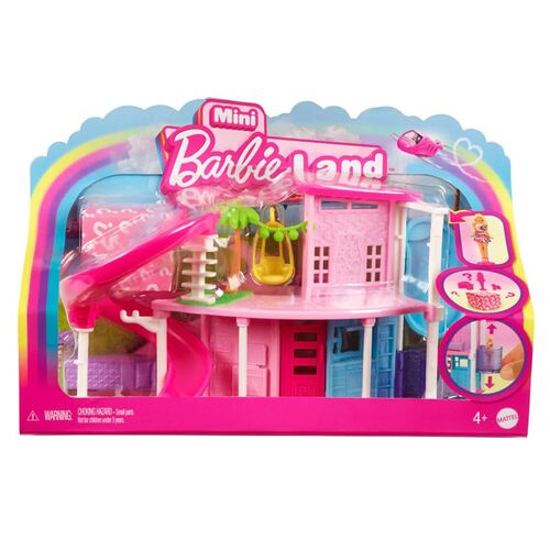 Καλώς ήρθατε στη Mini BarbieLand όπου οι αγαπημένες κούκλες Barbie, τα οχήματα και τα σετ παιχνιδιού έχουν μικροσκοπικό μέγεθος! Τα παιδιά μπορούν να διαλέξουν μεταξύ 3 διαφορετικών σπιτιών! Ανοίξτε το μικροσκοπικό κουτί για να αποκαλύψετε όλα τα αξεσουάρ, έναν σκύλο και μια mini κούκλα Barbie. Κάθε σπίτι διαθέτει τσουλήθρα, πισίνα, ασανσέρ και έπιπλα.