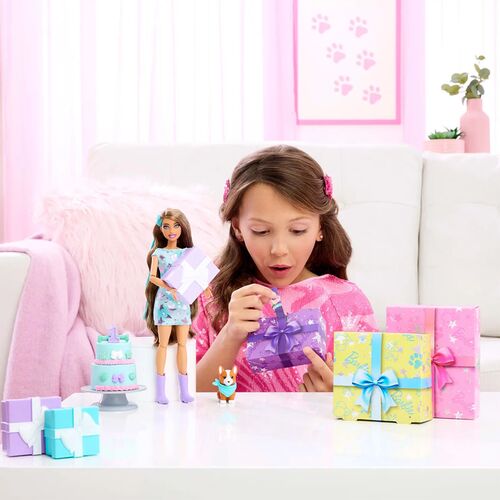 Γιορτάστε τη μαγεία των γενεθλίων με την Barbie Party Surprise Κούκλα Brunette! Ένα μοναδικό παιχνίδι γεμάτο εκπλήξεις, δημιουργικές δραστηριότητες και χαριτωμένα αξεσουάρ που θα κάνει τη φαντασία των παιδιών να ζωντανέψει. Περιλαμβάνει ένα χαριτωμένο κουταβάκι με αξεσουάρ για να το ντύσετε. Χρησιμοποιήστε τη ζύμη και τα καλούπια που περιλαμβάνονται για να διακοσμήσετε την τούρτα γενεθλίων. Ανακαλύψτε 8 θεματικά αξεσουάρ, συμπεριλαμβανομένων 2 με αλλαγή χρώματος και αντικείμενα εμπνευσμένα από γενέθλια. Η κούκλα διαθέτει κινητές αρθρώσεις, μοντέρνα ρούχα και αξεσουάρ, προσφέροντας ατέλειωτες δυνατότητες παιχνιδιού.