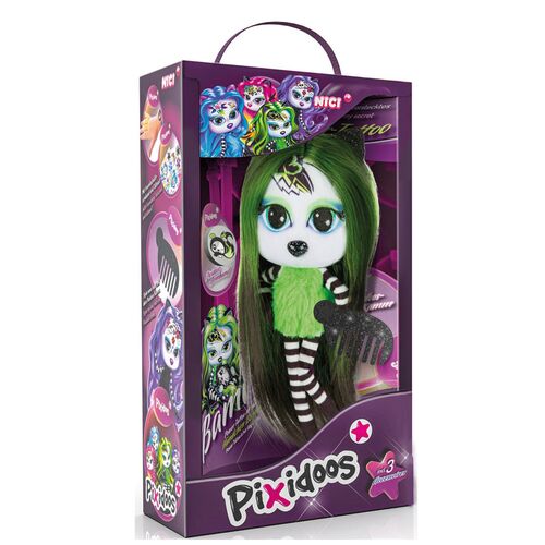 H Pixidoos συνδυάζει τη κούκλα αγκαλιάς και τη λαμπερής κούκλας styling!! Η κούκλα Piku με έντονα χρώματα (20 cm) έρχεται με εξαιρετικά απαλά πράσινα μαύρα μαλλιά και ένα σετ αξεσουάρ 3 τεμαχίων σε μια κομψή συσκευασία δώρου. Το σετ αξεσουάρ περιλαμβάνει αυτοκόλλητα τατουάζ, χτένα με glitter και βραχιόλι φιλίας Pixidoos.