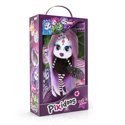 H Pixidoos συνδυάζει τη κούκλα αγκαλιάς και τη λαμπερής κούκλας styling!! Η κούκλα Piku με έντονα χρώματα (20 cm) έρχεται με εξαιρετικά απαλά μοβ μαλλιά και ένα σετ αξεσουάρ 3 τεμαχίων σε μια κομψή συσκευασία δώρου. Το σετ αξεσουάρ περιλαμβάνει αυτοκόλλητα τατουάζ, χτένα με glitter και βραχιόλι φιλίας Pixidoos.