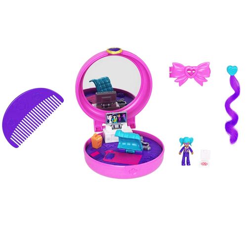Ώρα για διασκέδαση μαλλιών και ομορφιάς Polly Pocket! Κάθε αξιολάτρευτο κλιπ και χτένα περιλαμβάνει παιχνίδια μαλλιών και ομορφιάς σε ένα από τα τρία διαφορετικά θέματα: πισίνα, γενέθλια και ύπνο. Ανοίξτε κάθε σετ αναπαραγωγής για να αποκαλύψετε έναν καθρέφτη που στήνεται σαν μίνι νεσεσέρ. Τα χρώματα και τα διακοσμητικά μπορεί να διαφέρουν. Κάνει ένα υπέροχο δώρο για ηλικίες 4 ετών και άνω, ειδικά για όσους αγαπούν την ομορφιά, τη διασκέδαση της μόδας και τη δημιουργικότητα!