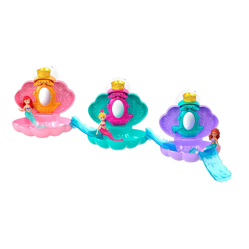 Άνοιξε το σετ-κοχύλι για να αποκαλύψεις μια αρθρωτή κούκλα γοργόνα: την Ariel από τον υποβρύχιο κόσμο της ταινίας κινουμένων σχεδίων, την αδελφή της Andrina ή την Ariel από τον υποβρύχιο κόσμο της live action εκδοχής!