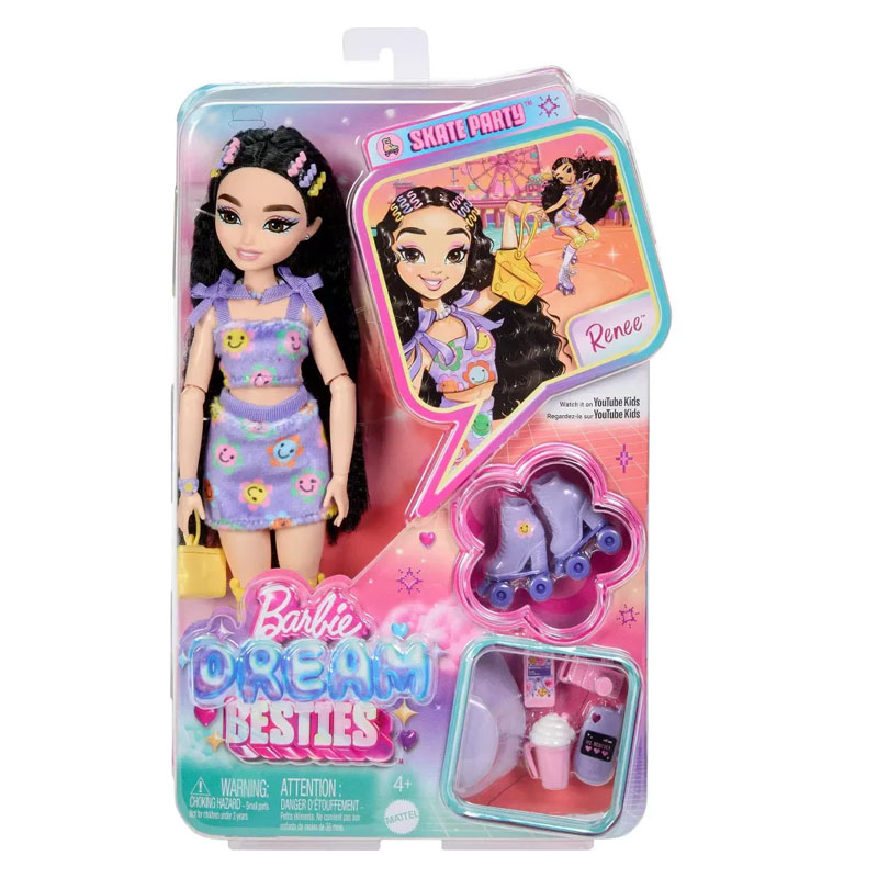 Οι κούκλες Barbie Dream Besties διαθέτουν διασκεδαστικά θεματικά αξεσουάρ που ταιριάζουν με το νέο τους χόμπι… το πατινάζ! Γνώρισε τη Renee με νέα ρούχα εμπνευσμένα από λουλούδια και τα αντίστοιχα πατίνια της!