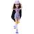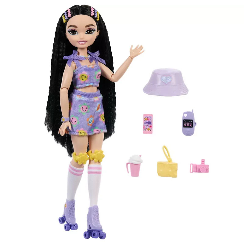 Η κούκλα είναι αρθρωτή και φοράει αφαιρούμενα ρούχα, όπως το γούνινο τοπ με λουλουδάτο μοτίβο και τη φούστα της, μαζί με τις λευκές κάλτσες με ροζ ρίγες και τα μοβ πατίνια με λεπτομέρειες λουλουδιών.