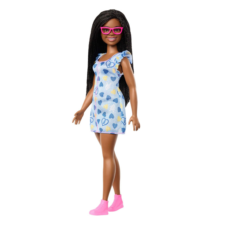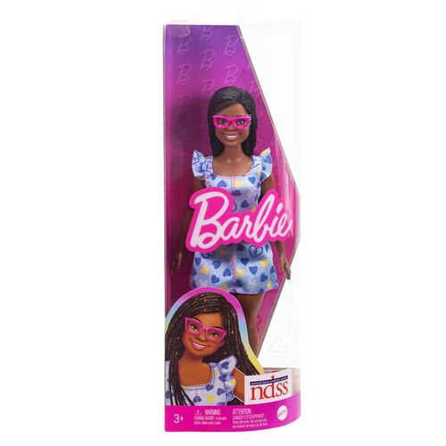 Κούκλα Barbie Fashionistas #229 NDSS με χαρακτηριστικά Σύνδρομου Down και σκούρο δέρμα. Ιδανική για να εμπνεύσει τη διαφορετικότητα και την αποδοχή. Σχεδιασμένη με προσοχή για να αντικατοπτρίζει την ποικιλία και την ομορφιά στον κόσμο των κούκλων.