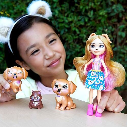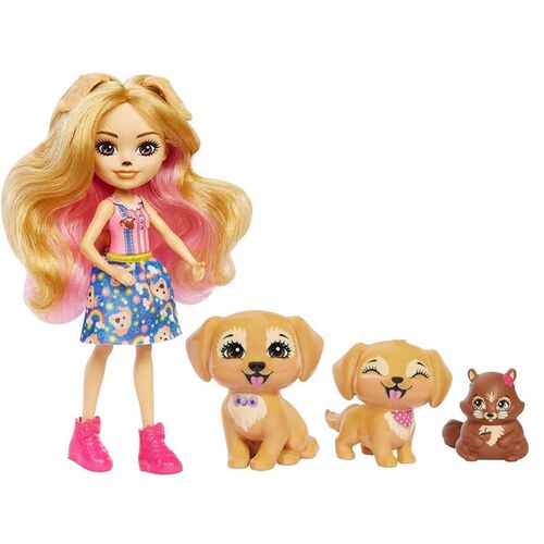 Παιδική Κούκλα Enchantimals City Tails Gerika με Οικογένεια Golden Retriever