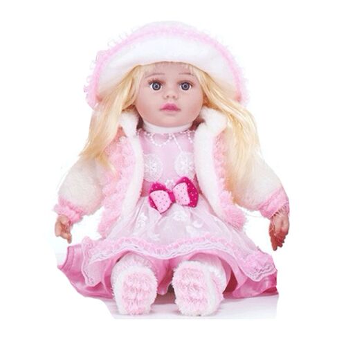 - Η κουκλίτσα φοράει σκουφάκι,γούνινο ζακετάκι και γούνινα καλτσάκια. Το ροζ φουστάνι της είναι διακοσμημένο με χιονονιφάδες!