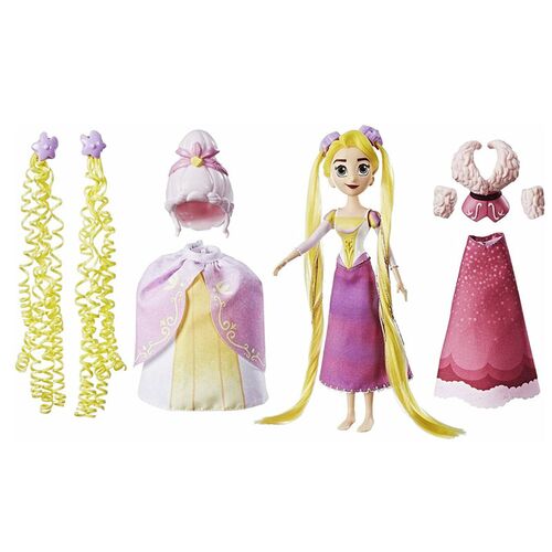 Περιέχει διαφορετικά κομμάτια ρούχων, περούκες και κομμάτια μαλλιών, τα οποία μπορούν να διαμορφωθούν κατά βούληση και να φτιάξετε τη Ραπουνζέλ όπως εσείς θέλετε!