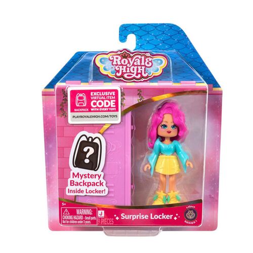 Μπείτε σε έναν μαγικό κόσμο μόδας και στυλ με το Royale High, ένα εικονικό βασίλειο που σίγουρα θα σας μαγέψει! Το Surprise Locker, εμπνευσμένο από το παιχνίδι, είναι μια μυστηριώδης έκπληξη! Υπάρχουν 6 Σειράς 1 Surprise Lockers με Κούκλες για να συλλέξετε και τα ρούχα είναι εναλλάξιμα σε όλη τη σειρά, ώστε να μπορείτε να τα συνδυάσετε για να δημιουργήσετε τη μοναδική σας εμφάνιση. Κάθε κούκλα συνοδεύεται από ένα μοναδικό μυστηριώδες σακίδιο πλάτης που ταιριάζει με το μαγικό της στοιχείο. Ποιο θα ανακαλύψετε; Κάθε κούκλα συνοδεύεται από έναν εξαργυρώσιμο κωδικό παιχνιδιού που σας επιτρέπει να προσθέσετε αξεσουάρ στο avatar σας στο παιχνίδι σε όλες τις εμπειρίες.