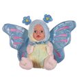 Μία υπέροχη πεταλούδα σε λούτρινο παιχνίδι! Η πεταλούδα είναι γαλάζιου χρώματος με γκλίτερ στα φτερά και στις κεραίες, το σώμα της είναι στις αποχρώσεις του γαλάζιου-κίτρινου, το πρόσωπο της είναι πλαστικό και τα άκρα της είναι μπεζ χρώματος. Η πεταλούδα φοράει ένα γαλάζιο τούλι, γύρω από τον λαιμό της.