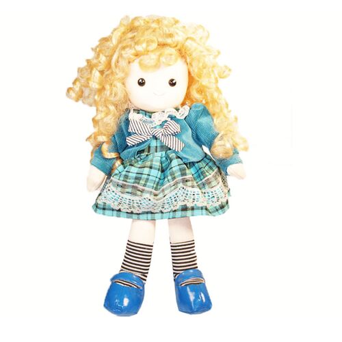 Η κούκλα είναι πάνινη και το πρόσωπο της εσωτερικά αποτελείται από σκληρό υλικό. Η κούκλα είναι κουρδιστή, κινείται το πρόσωπο της και παράγεται μουσική, φοράει καρό φορεματάκι, μπλε ζακετάκι και μπλε παπούτσια. Μία χαριτωμένη κούκλα με προσεγμένα ρούχα και αξεσουάρ συντροφεύει τα κορίτσια στο φανταστικό κόσμο των παιχνιδιών!