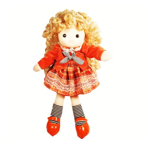 Η κούκλα είναι πάνινη και το πρόσωπο της εσωτερικά αποτελείται από σκληρό υλικό. Η κούκλα είναι κουρδιστή, κινείται το πρόσωπο της και παράγεται μουσική, φοράει καρό φορεματάκι, πορτοκαλί ζακετάκι και πορτοκαλί παπούτσια. Μία χαριτωμένη κούκλα με προσεγμένα ρούχα και αξεσουάρ συντροφεύει τα κορίτσια στο φανταστικό κόσμο των παιχνιδιών!