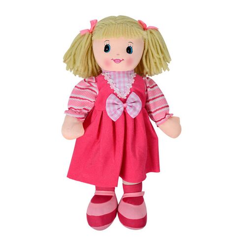 Κούκλα Πάνινη με Φούξια Φόρεμα και Κοτσιδάκια 46cm