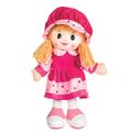 Κούκλα Πάνινη Ροζ Πουά Φόρεμα και Καπέλο Ροζ Λούτρινο 25cm