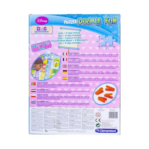 Η γιατρός των παιχνιδιών θα τα φτιάξει όλα, οπότε αν σπάσει, υπάρχει έκτακτη ανάγκη! Είναι και τα παιδιά σας μεγάλοι θαυμαστές της γιατρού των παιχνιδιών; Τότε θα είναι απόλυτα θαυμαστές αυτού του φανταστικού παζλ. Η Clementoni και η Disney ένωσαν τις δυνάμεις τους για να φτιάξουν αυτό το όμορφο παζλ Double Fun. Διπλή διασκέδαση, γιατί δεν είναι απλώς ένα παζλ, είναι και ένα κριτήριο, με το οποίο μπορείτε να παρακολουθείτε ακριβώς πόσο ψηλά είστε και πόσο γρήγορα μεγαλώνετε! Το παζλ είναι κατασκευασμένο από στιβαρό χαρτόνι και τα κομμάτια είναι ωραία και μεγάλα, ώστε να το χειρίζονται καλά και τα μικρά παιδιά.